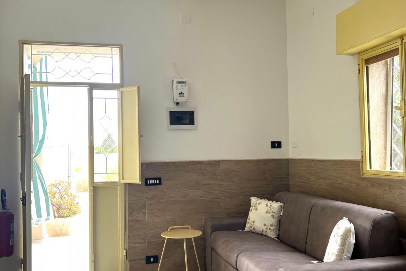 La villa è indipendente, si accede dal cortile con meravigliosi ulivi ed il forno a legna. All'interno si trova la zona giorno con divano letto, smart tv, tavolo per 6 persone e cucina completa di tutto il necessario per cucinare, stoviglie e tutti gli elettrodomestici, compresa la lavastoviglie.