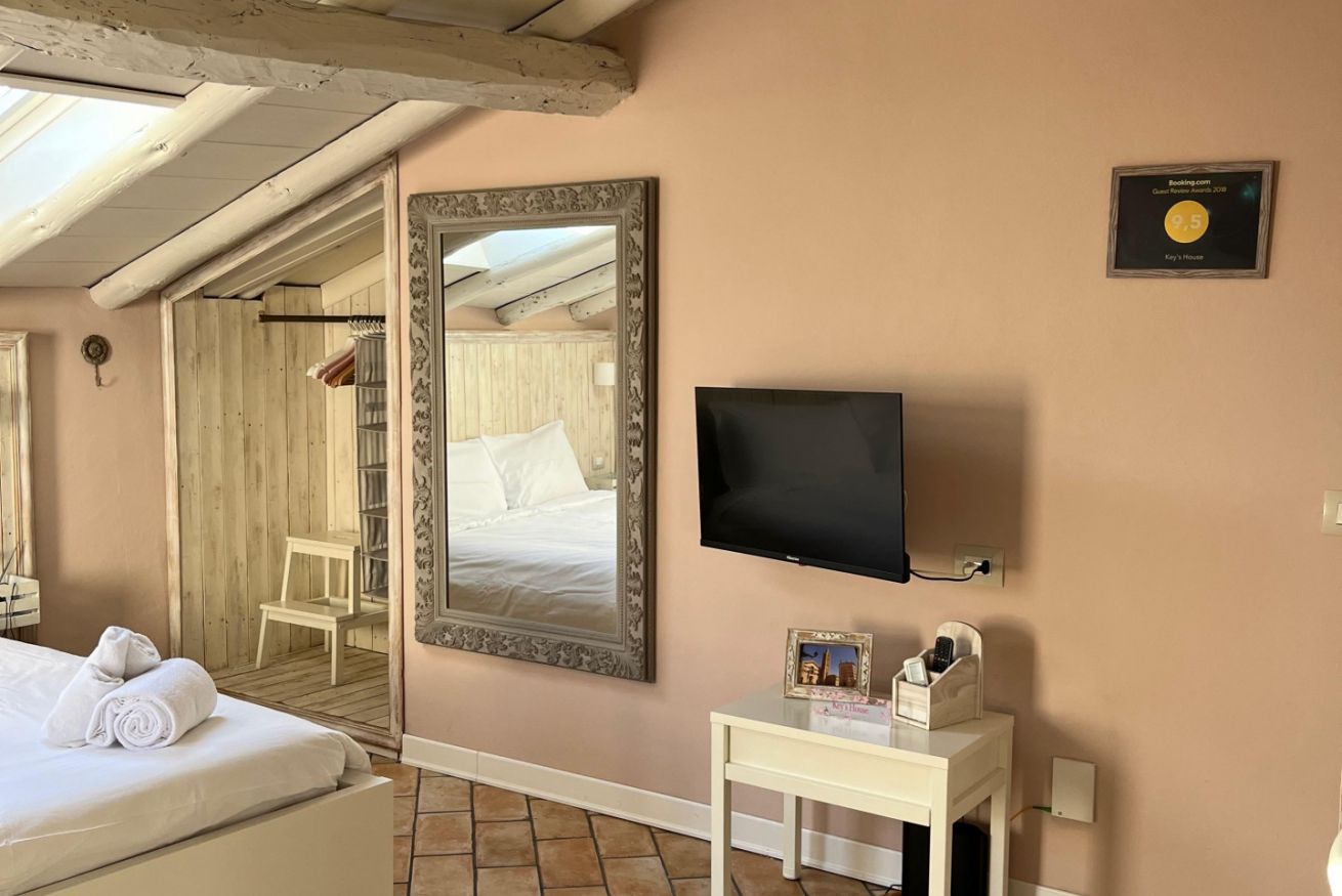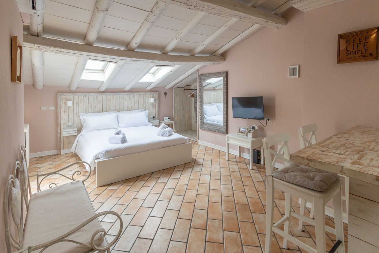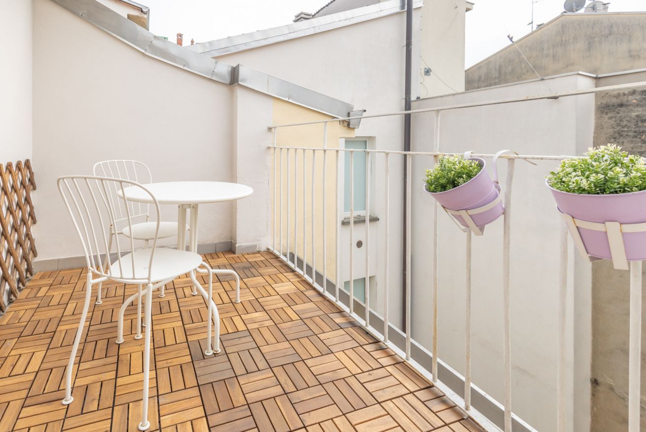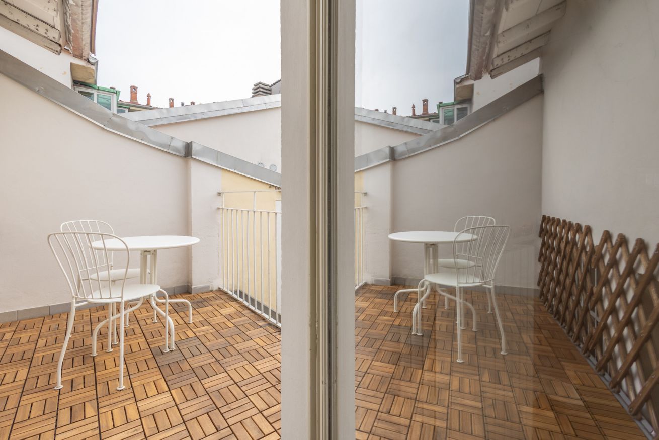 Il vero gioiello è il balconcino privato: un piccolo angolo incantato che si affaccia sui tetti della città.