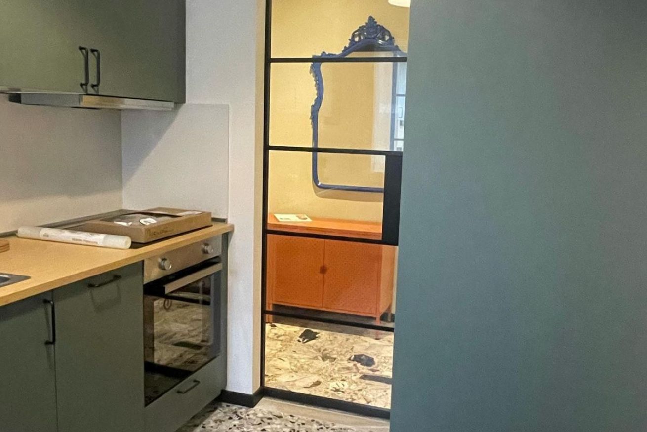 Entrando ci si trova in un colorato e ampio disimpegno che divide le tre aree della casa: cucina, bagno e camera da letto.