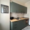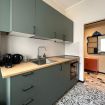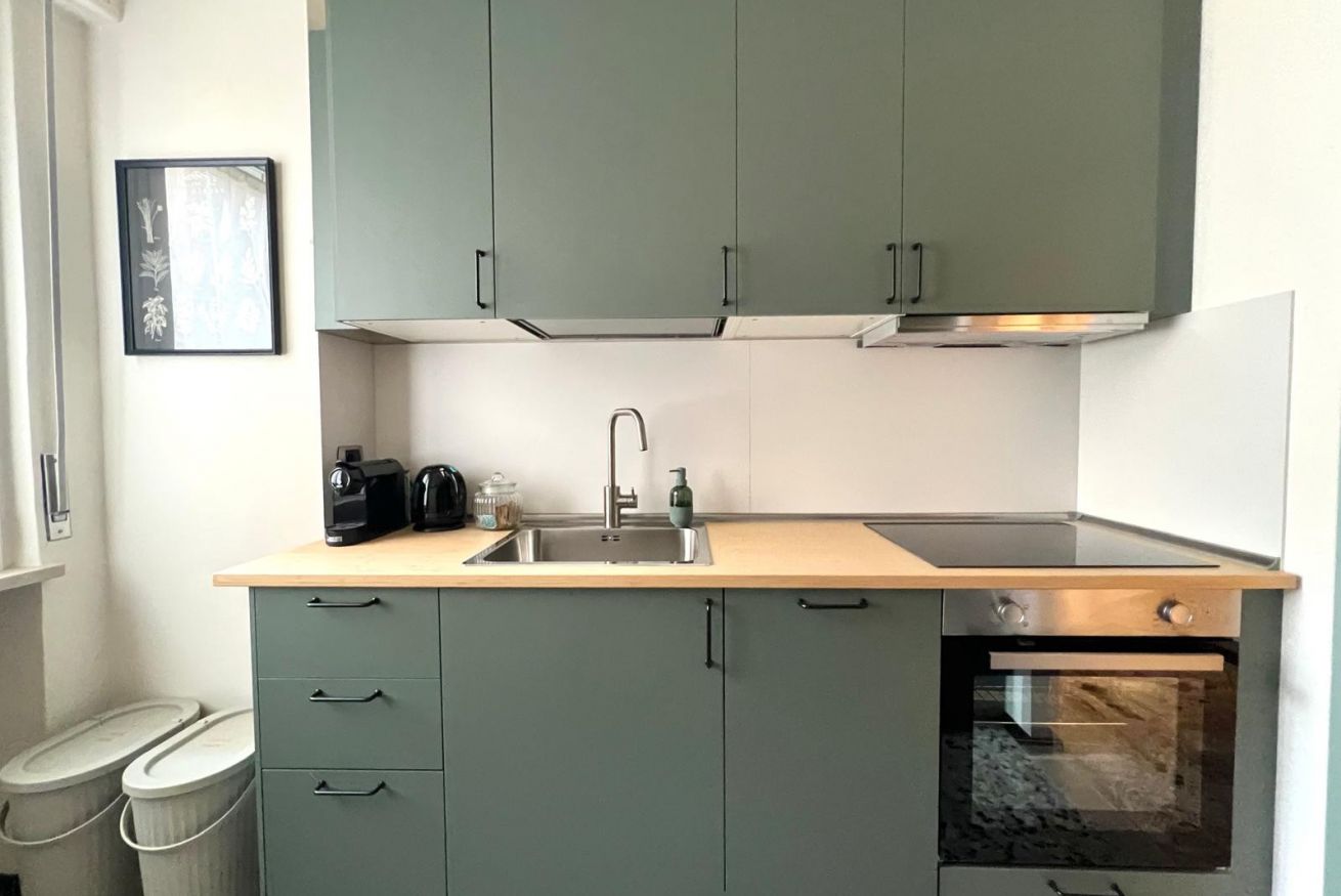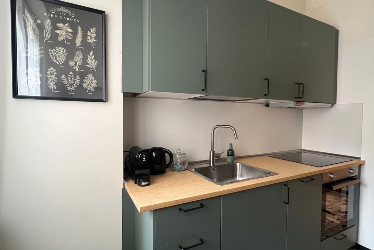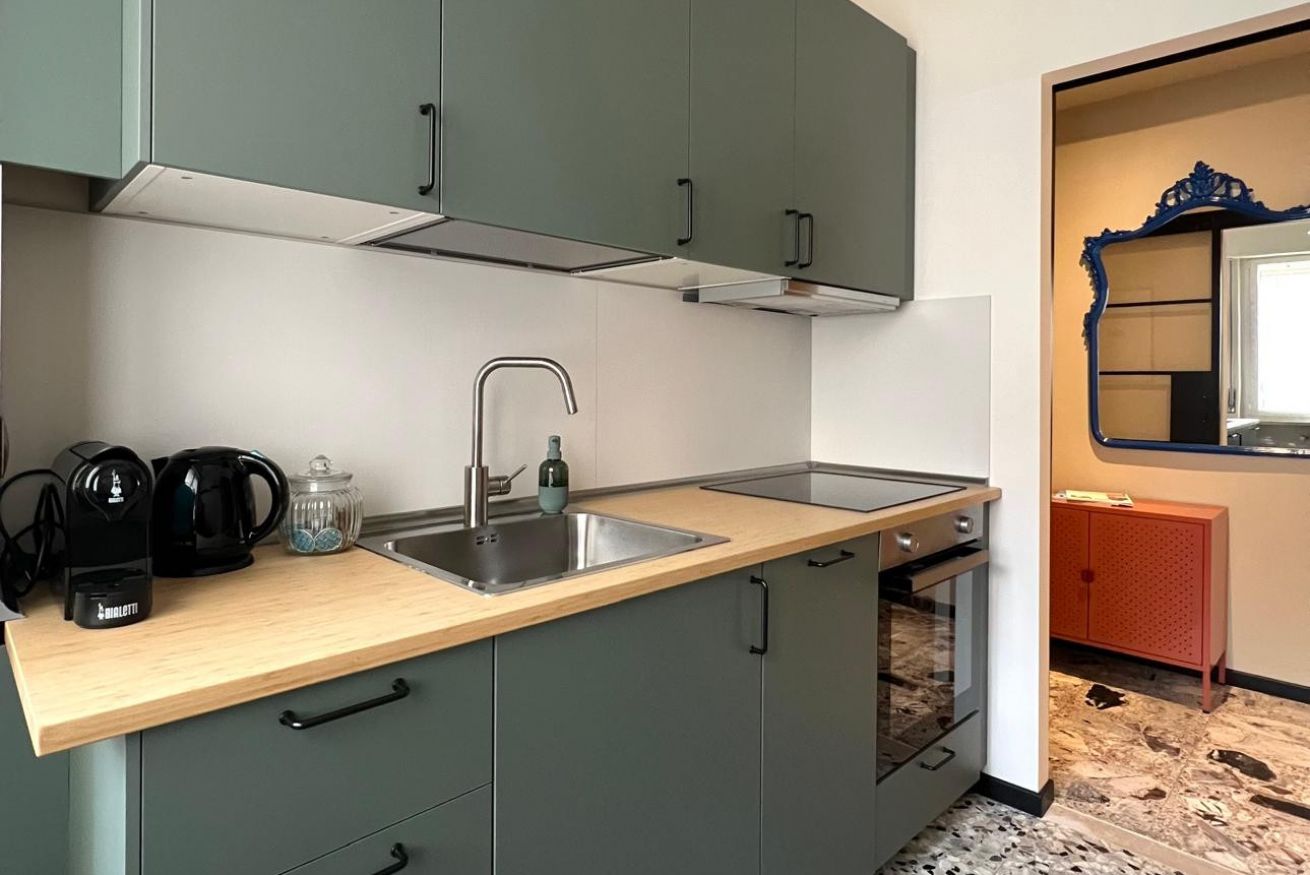 La cucina è abitabile e dotata di lavastoviglie, fornelli a induzione, forno, macchinetta del caffè con cialde, bollitore, pentole e utensili per cucinare.