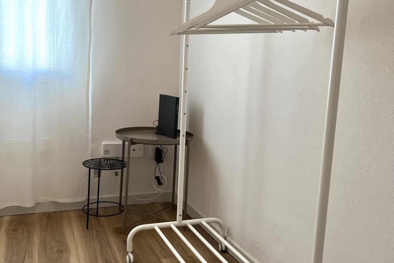 Si passa poi alla camera singola confortevole in cui si trovano tavolini da appoggio e rella appendiabiti.