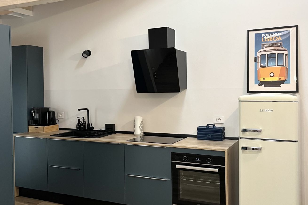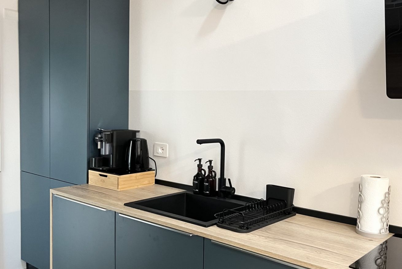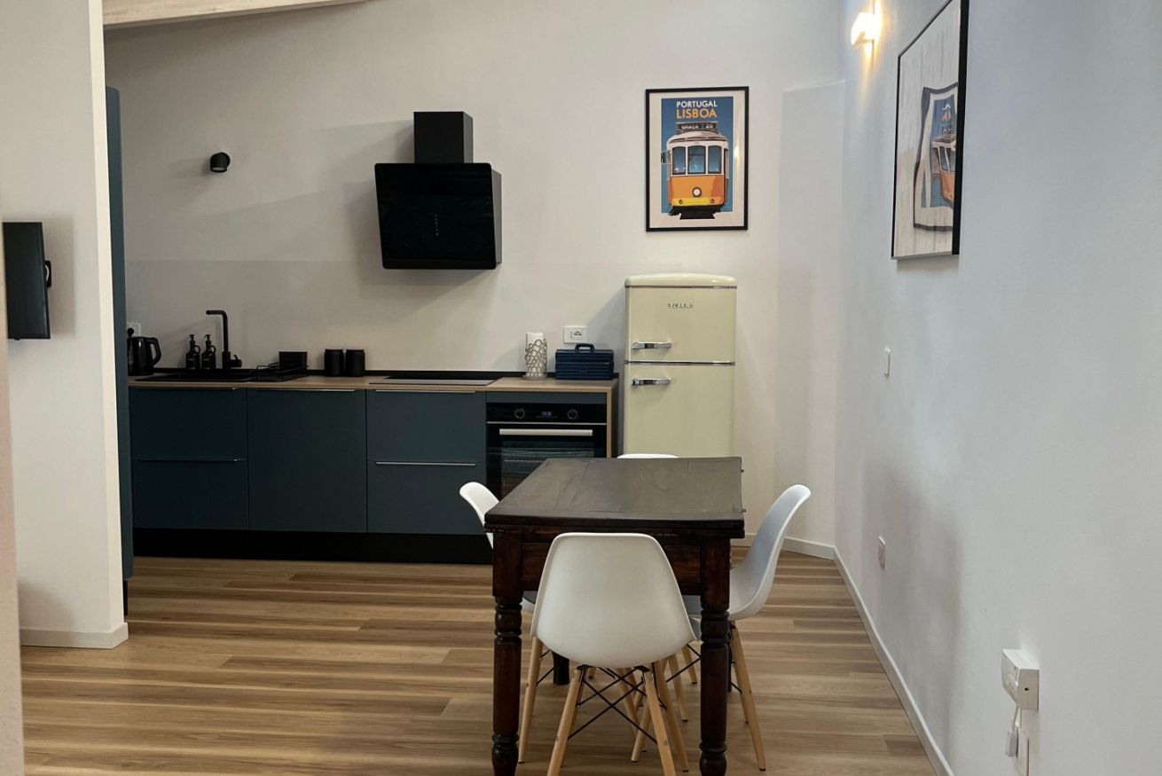 La cucina è interamente attrezzata con: forno, piano ad induzione, macchinetta del caffè con cialde Nespresso, bollitore, lavastoviglie e utensili per cucinare, da qui si può passare al balconcino.